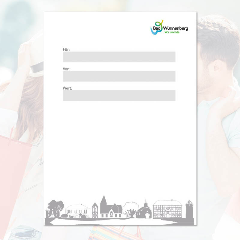 Mit dem Kauf unterstützen Sie Ihre Lieblingsläden in Bad Wünnenberg und helfen dabei, unsere schöne Stadt so zu bewahren, wie wir sie kennen. Der Gutschein kann mit einem Wunschbetrag zwischen 5 und 250 € aufgeladen werden und bei allen teilnehmenden Geschäften auch in Teilbeträgen eingelöst werden.